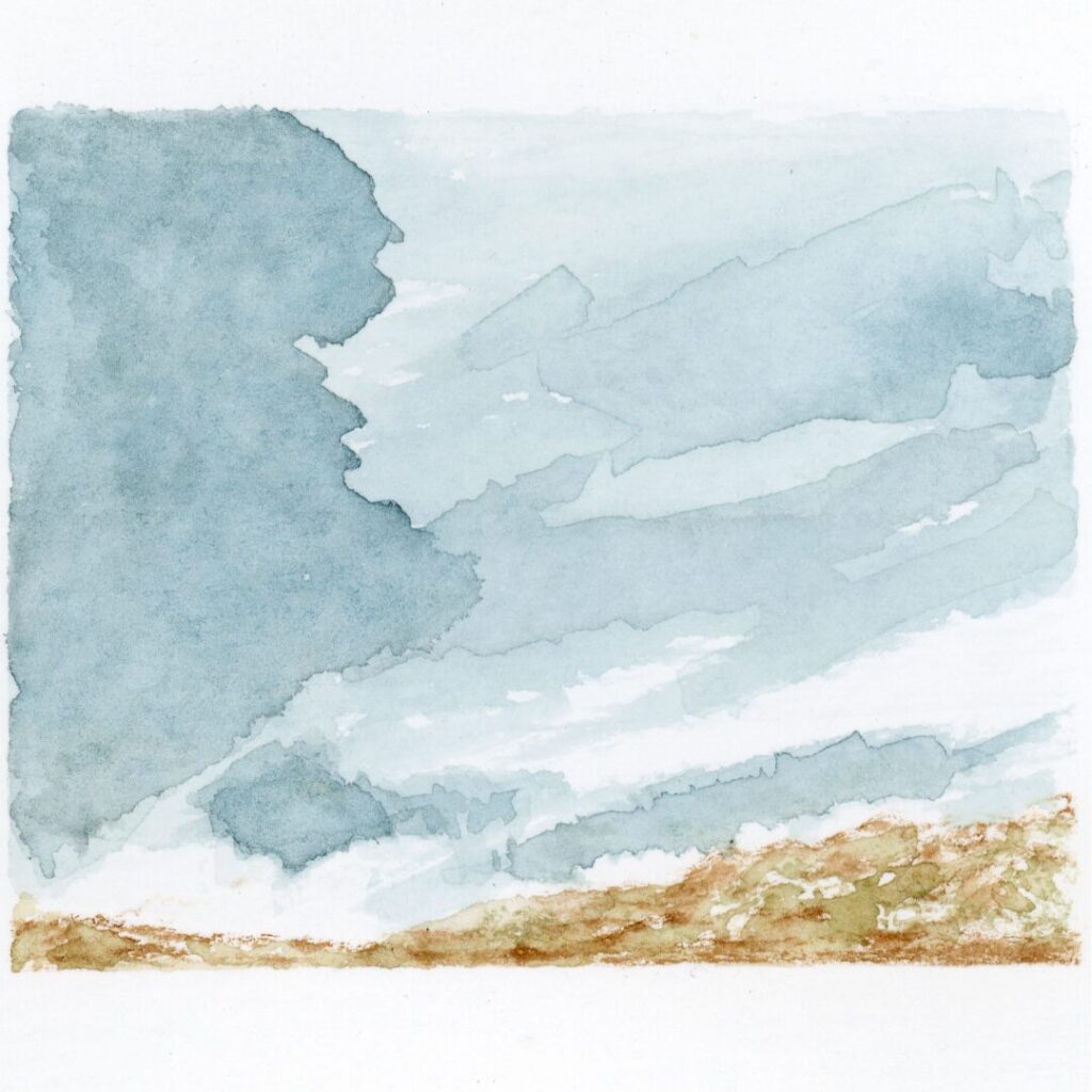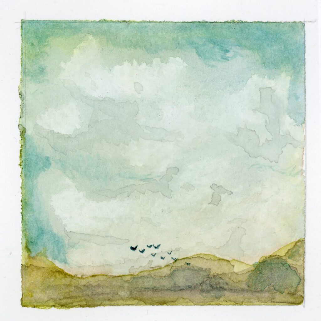 I create watercolor paintings and ink drawings that explore landscapes shaped by atmosphere, memory, and restraint. Influenced by Impressionism and modern approaches to abstraction, my work imagines the natural world as it might exist with little or no human presence. These scenes feel familiar yet intentionally omit roads, towers, contrails, and other markers of development, creating spaces for stillness and contemplation.
